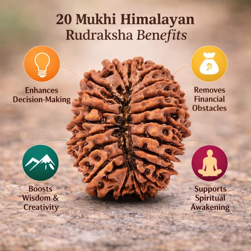 Believed to empower its wearer to enhance decision-making, remove financial obstacles, and nurture spiritual enlightenment, this bead is perfect for seekers aiming to achieve harmony in life. Whether you’re pursuing professional success, clarity in relationships, or inner peace, the 20 Mukhi Himalayan Rudraksha is an ideal companion on your journey.