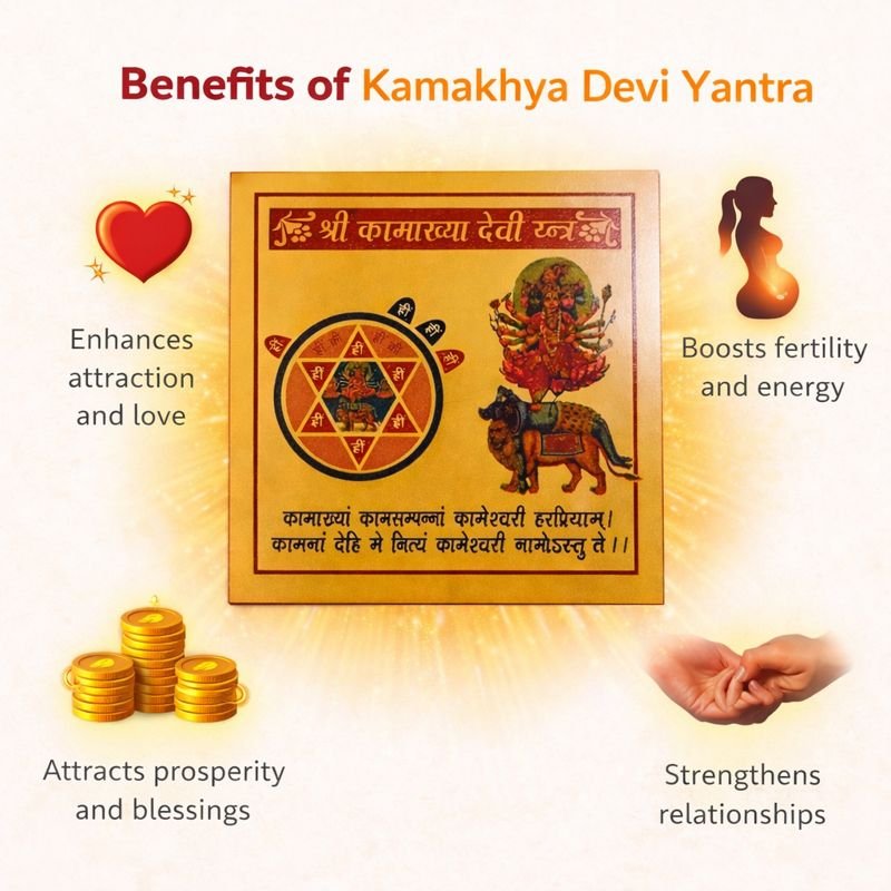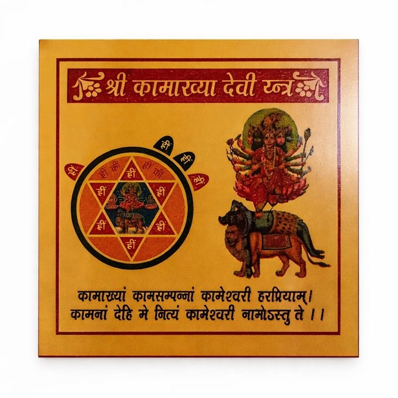 Kamakhya Devi Yantra is a powerful sacred yantra associated with Goddess Kamakhya, known for fulfilling desires, enhancing attraction, and boosting spiritual energy. This energized yantra helps remove obstacles, strengthen relationships, and attract prosperity. Ideal for worship and meditation, it brings positive vibrations, success, and divine blessings into daily life.