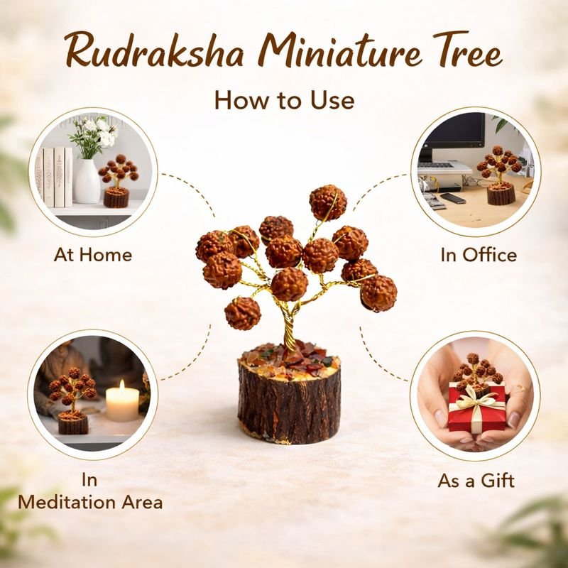 Whether it’s your living room, meditation space, or workplace, the Rudraksha Miniature Tree blends perfectly into any decor. Its natural elegance elevates vastu, making it an ideal centerpiece to foster wellness and tranquility. Placed in meditation or prayer rooms, it becomes a beautiful symbol of spiritual alignment and positive living.